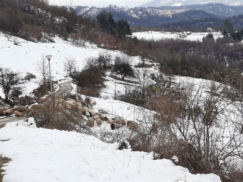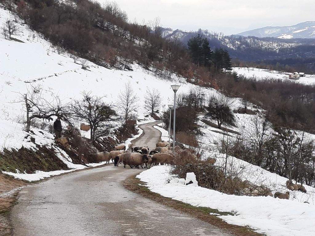 De man vd kassa zei als je doorrijd kom je boven bij een hotel uit dan is het 20 minuten naar de top🤔 Wij omhoog nog een smaller pad😱hier moet je geen tegen ligger tegen komen. Boven de auto geparkeerd. Er kwam een herder met zijn schapen naar beneden. Ook hier zeer stijl pad met veel modder en sneeuw. Nou ja we zijn ver gekomen. Terug via die zeer smalle wegen naar huis.