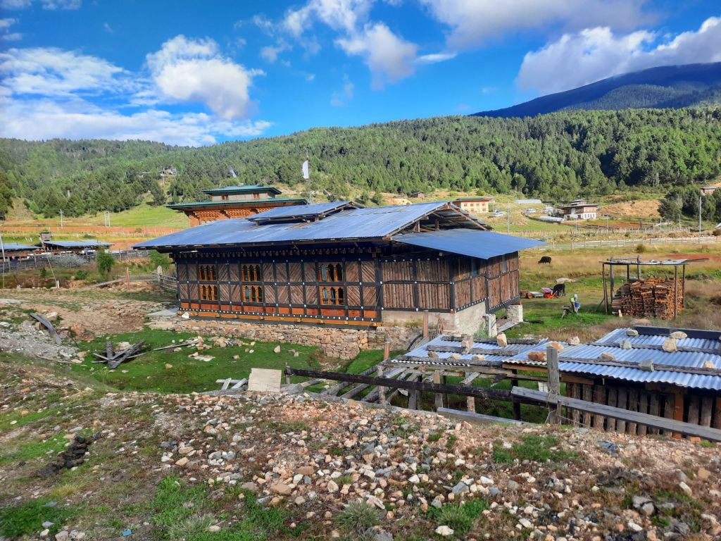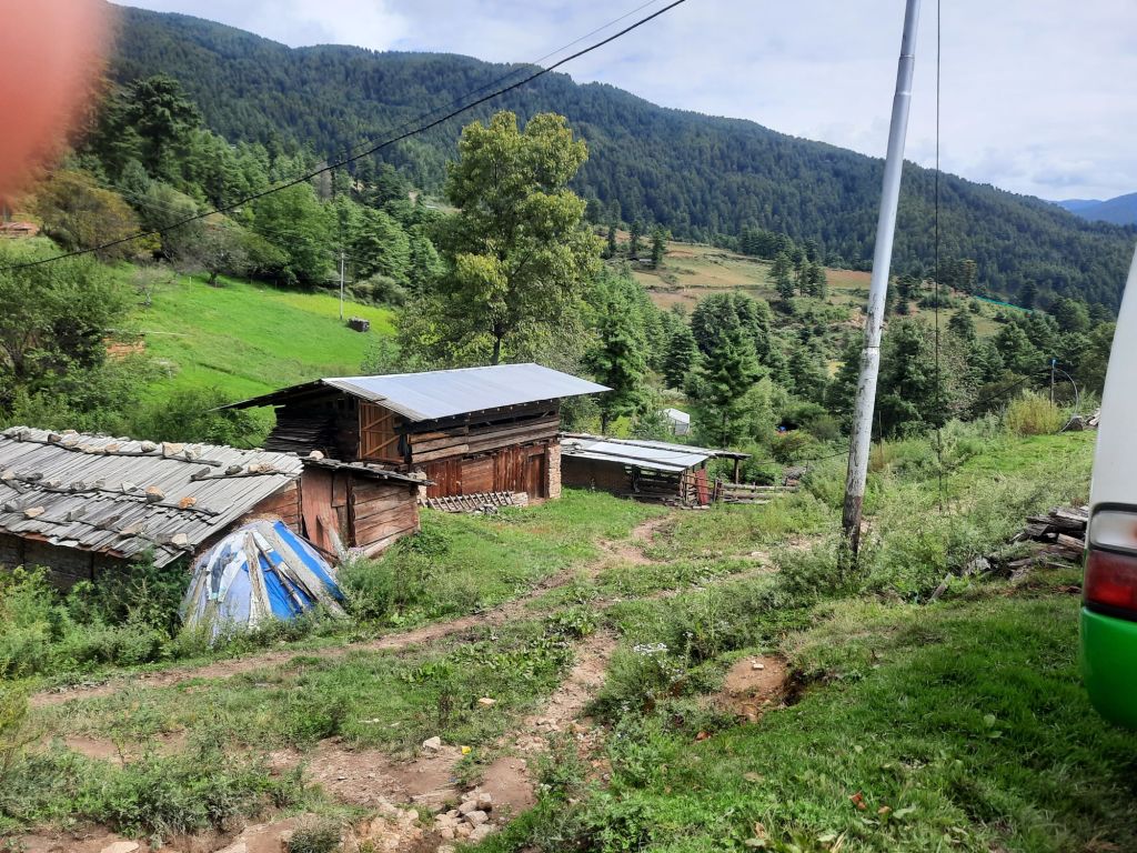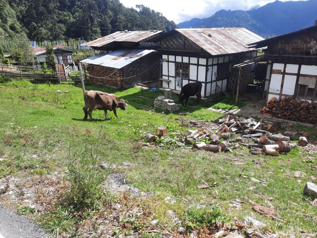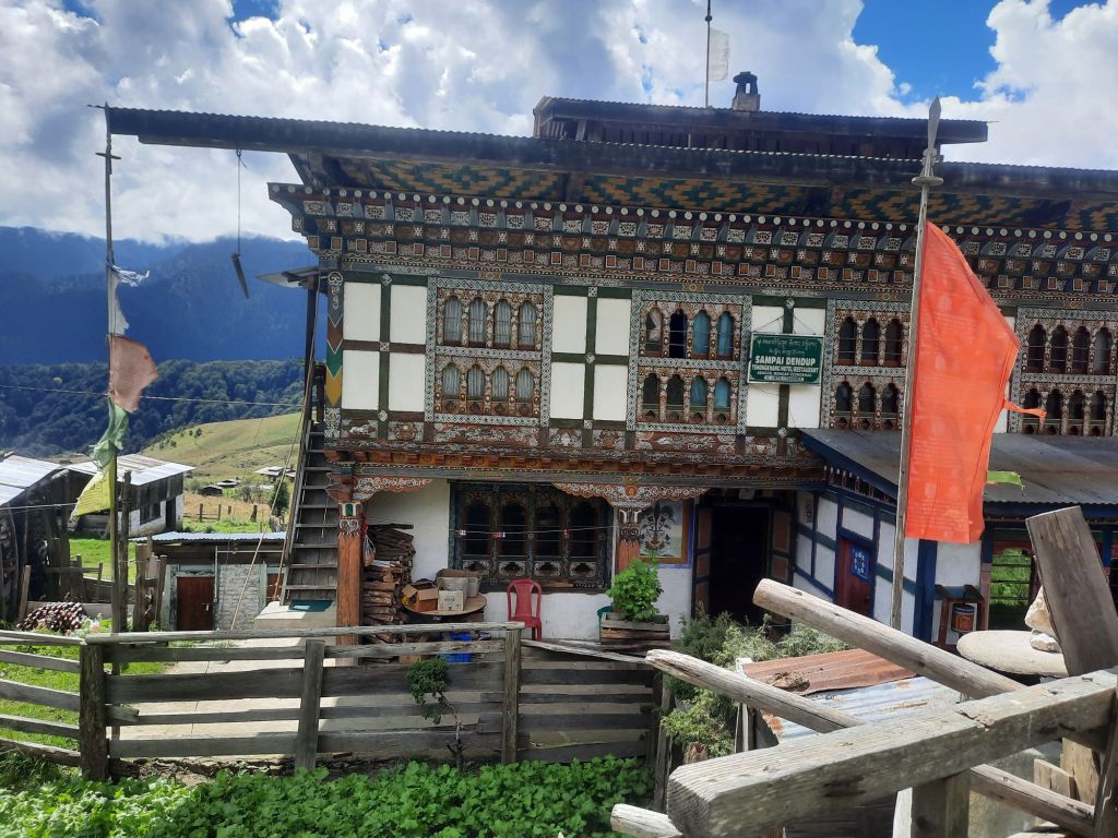 Na het ontbijt een slingerweg naar boven. Op weg naar Osyn Choling Museum. Mooie boekweit velden onderweg. Plas pauze bij het huis van 1 vd Chauffeurs hier woont hij met zijn ouders en zus.