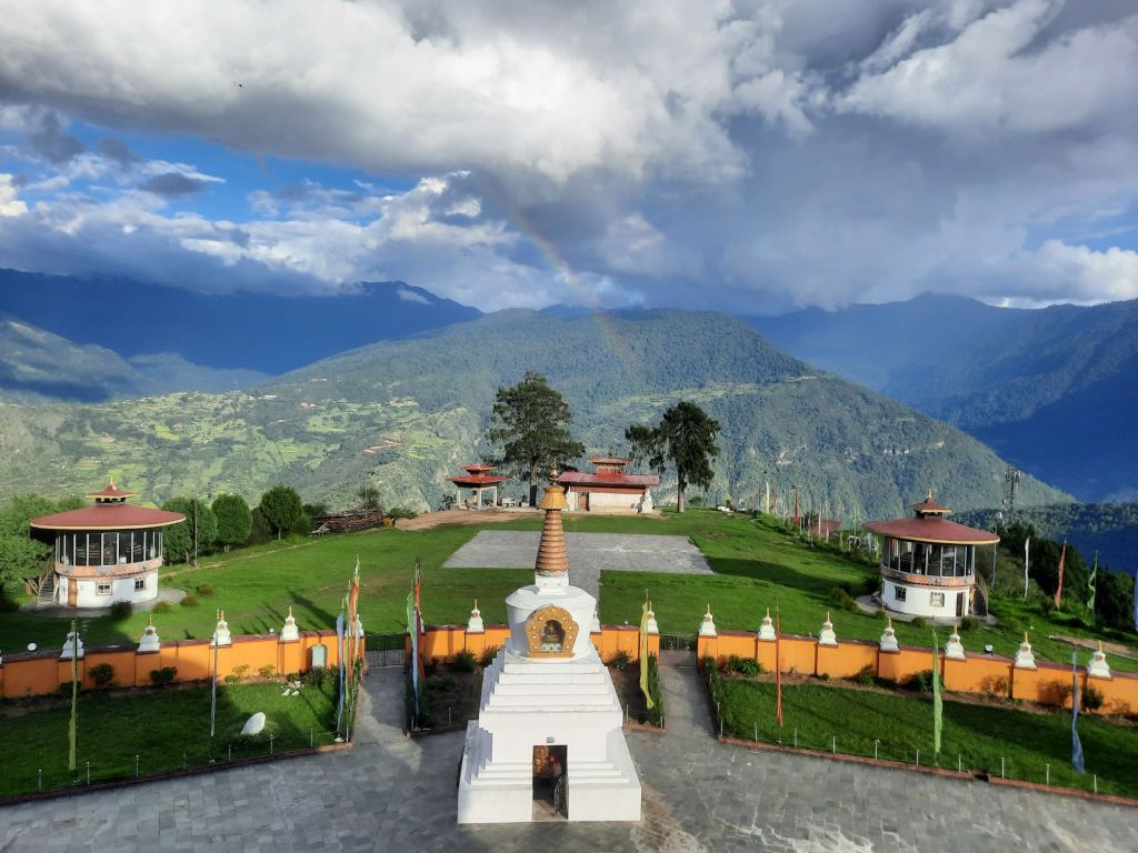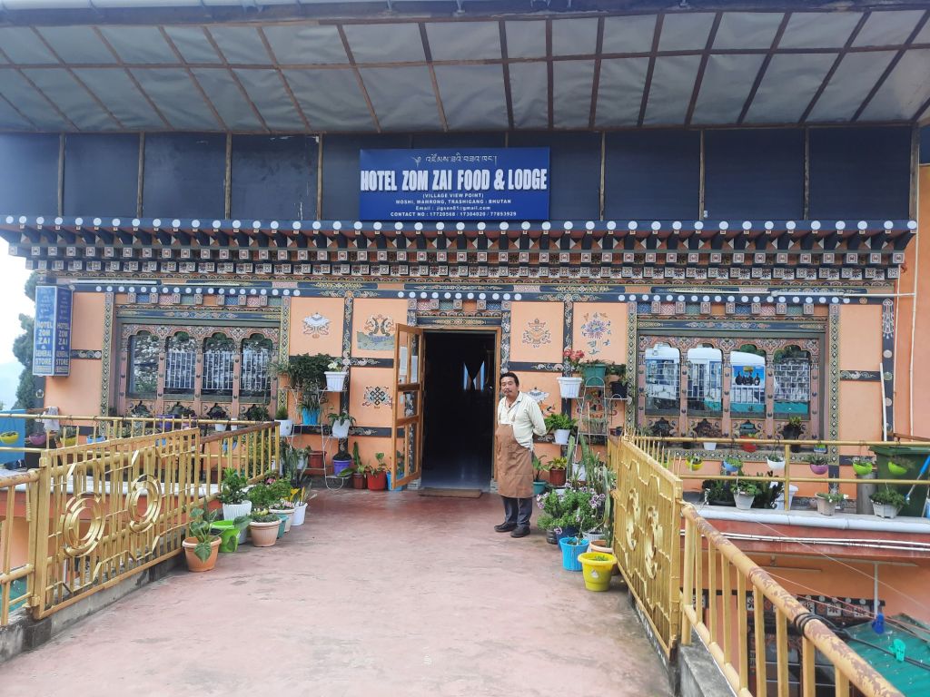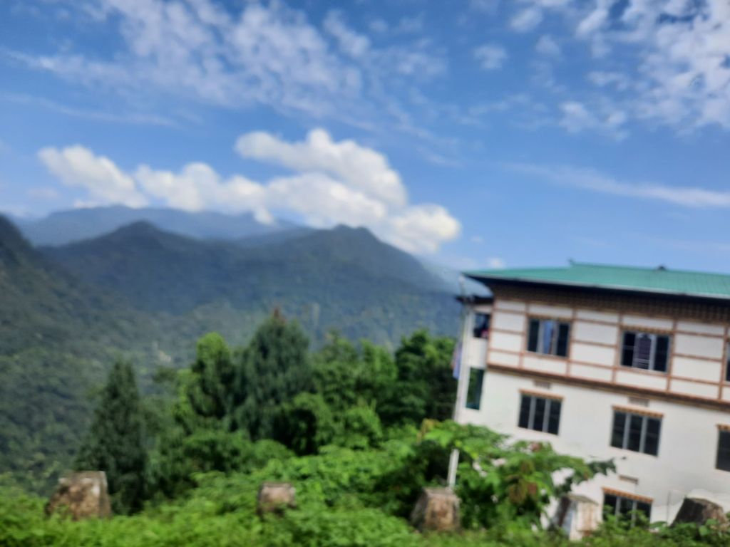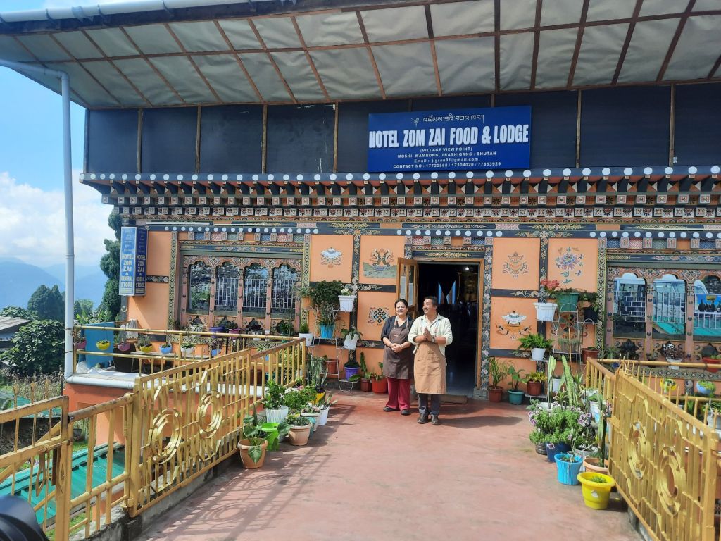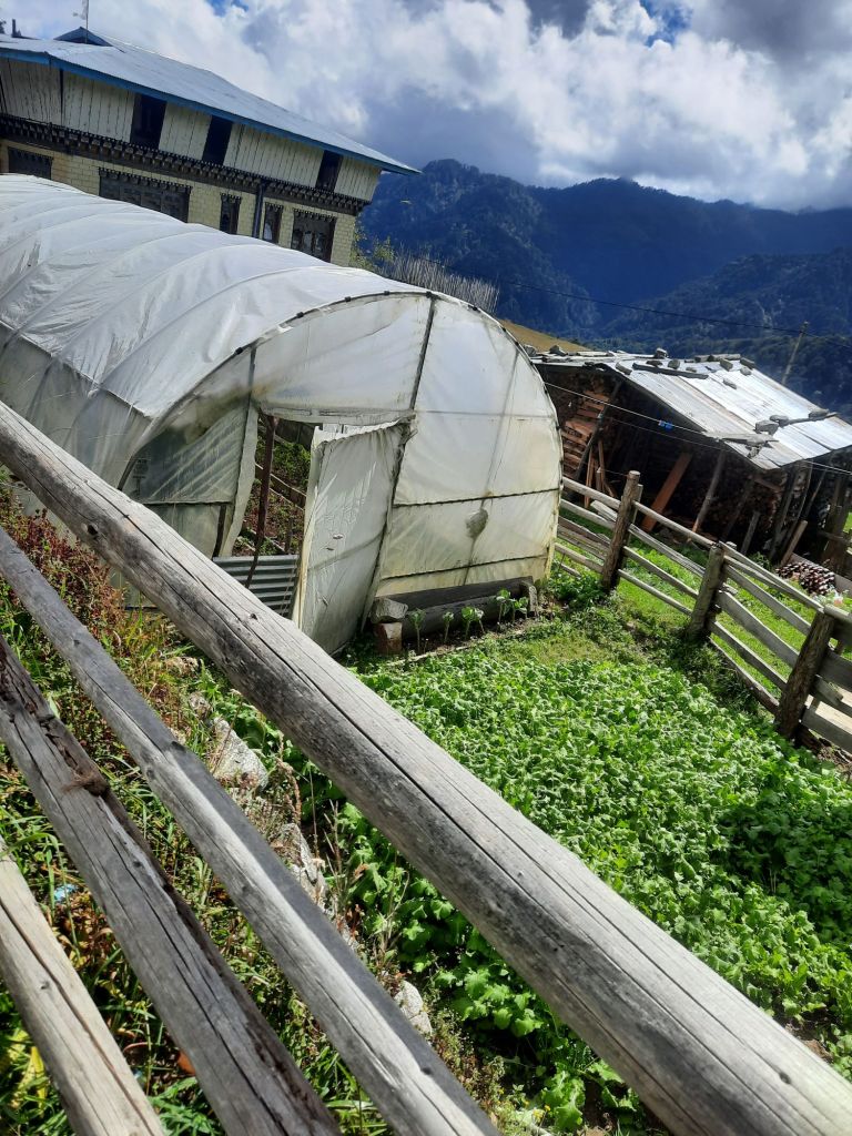 Na het ontbijt een slingerweg naar boven. Op weg naar Osyn Choling Museum. Mooie boekweit velden onderweg. Plas pauze bij het huis van 1 vd Chauffeurs hier woont hij met zijn ouders en zus.