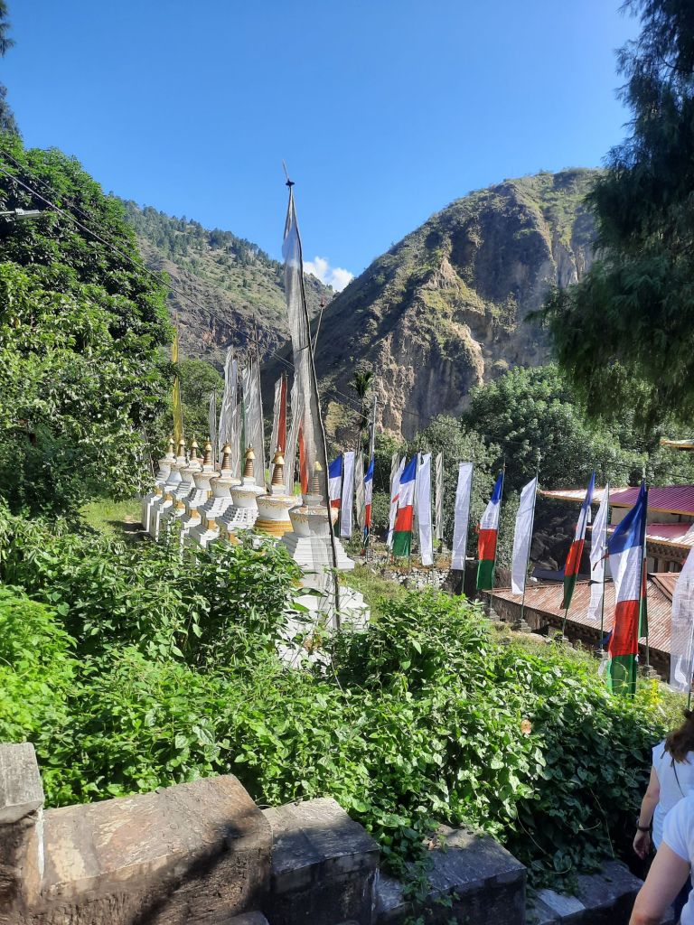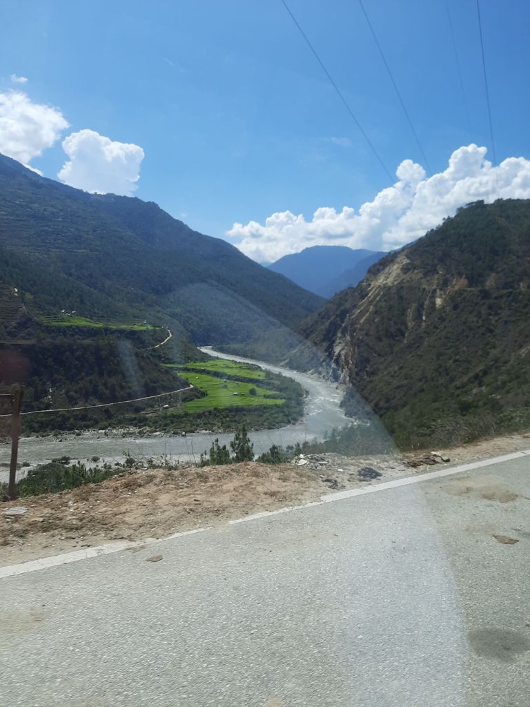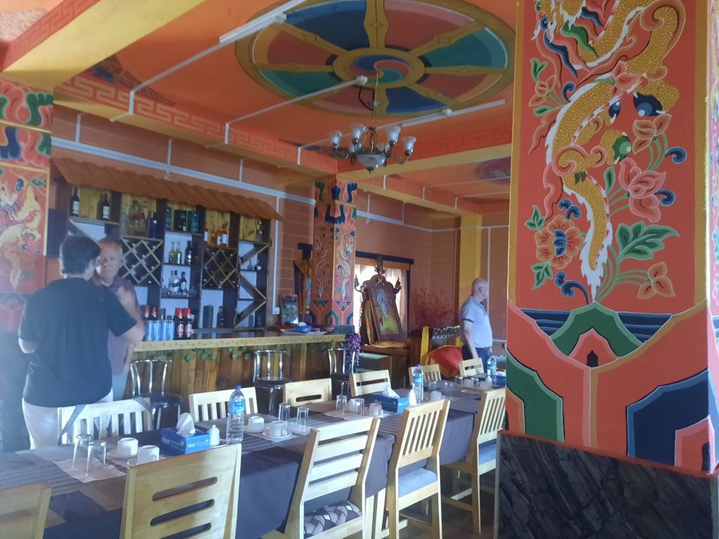 Daarna lunch bij de schoonzus vd chauffeur. Buiten lunch. Daarna naar burning lake. Hier heeft Pema Lingpa een schat gevonden in het water, die hij naar boven haalde met zijn boterlamp die aan bleef. De revier heet Tang Chha. Terug naar het hotel en om 18.00 uur uit eten bij een Switsers restaurant. Eten viel wat tegen. Tot morgen .