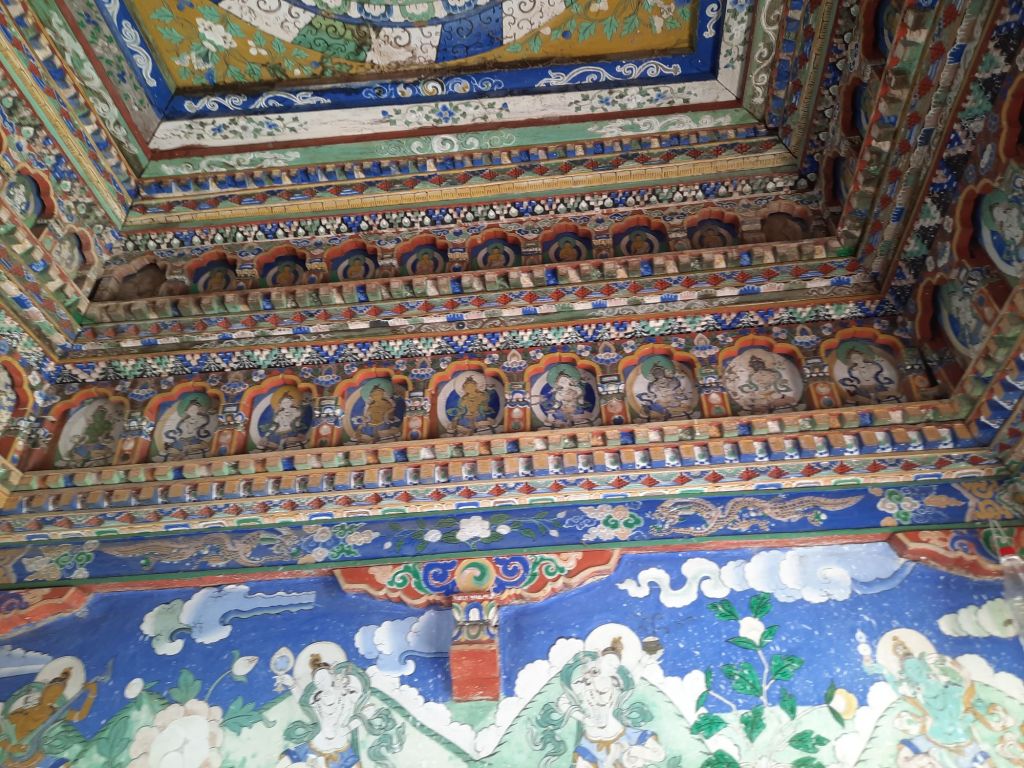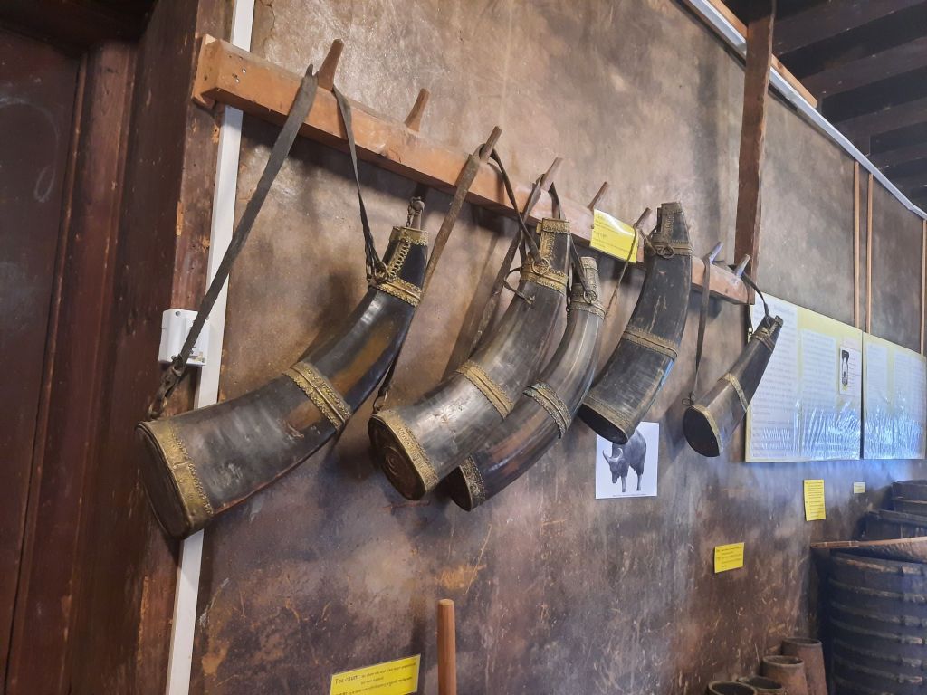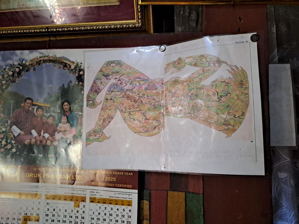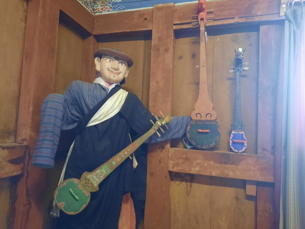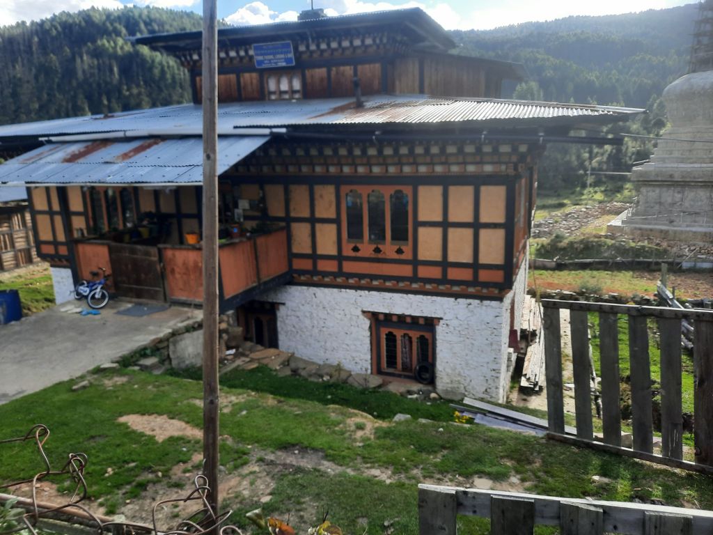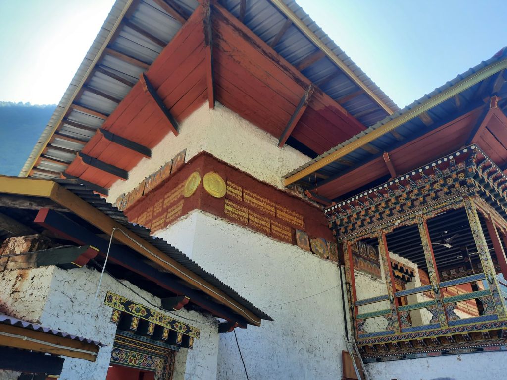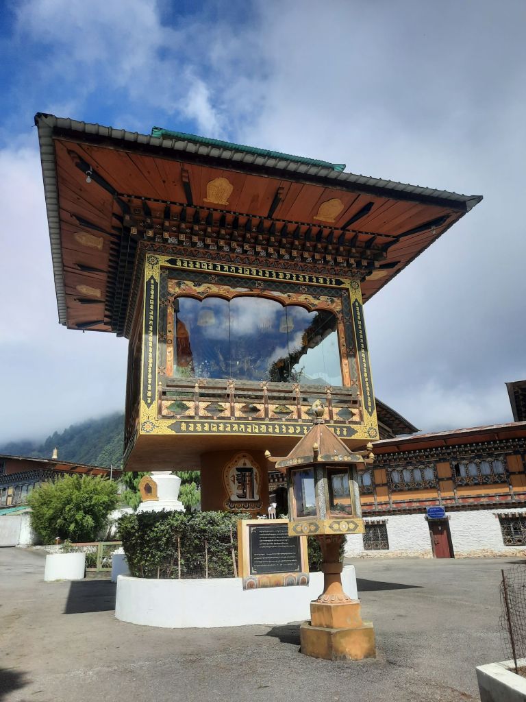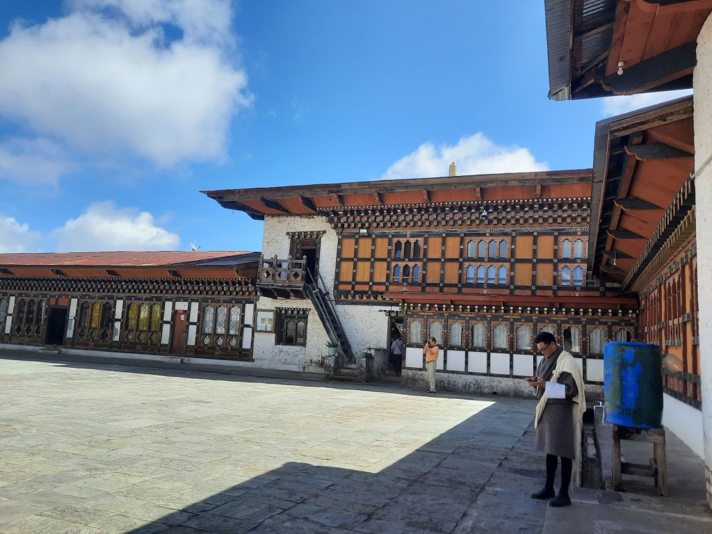 Dan verder over slingerweg omhoog. Hoog op de beg staat het huis van een grote Tibetaanse meester die in de 14de eeuw naar Buthan kwam. Longchen Rabjám bouwde hier een groot complex. De familie woonde hier eeuwen lang. De kinderen van de laatste generatie besloot te gaan studeren. Na de studie keerde ze terug en besloten het huis op te knappen en er een museum van te maken. Zeer mooi opgezet . 3 verdiepingen vh huis is te bezichtigen met een houten steile trap. Achter de gebedsrollen staan hier zeer oude klei tabletten met verschillende Boeddha’s.