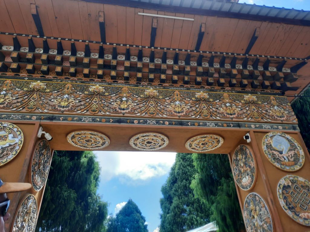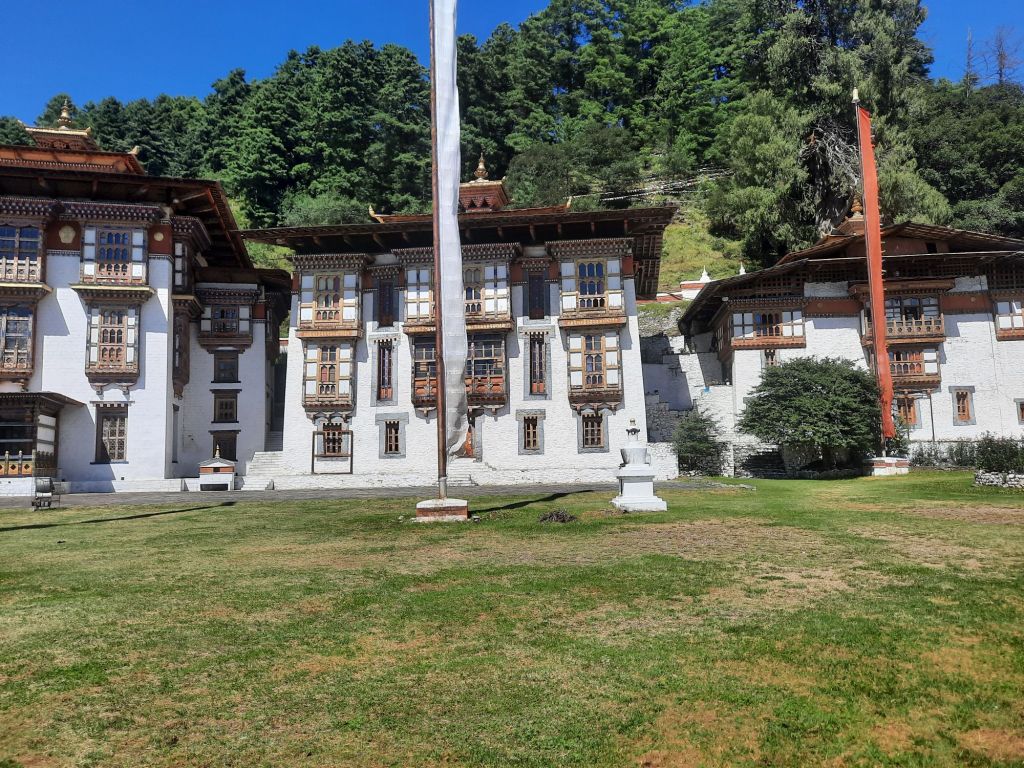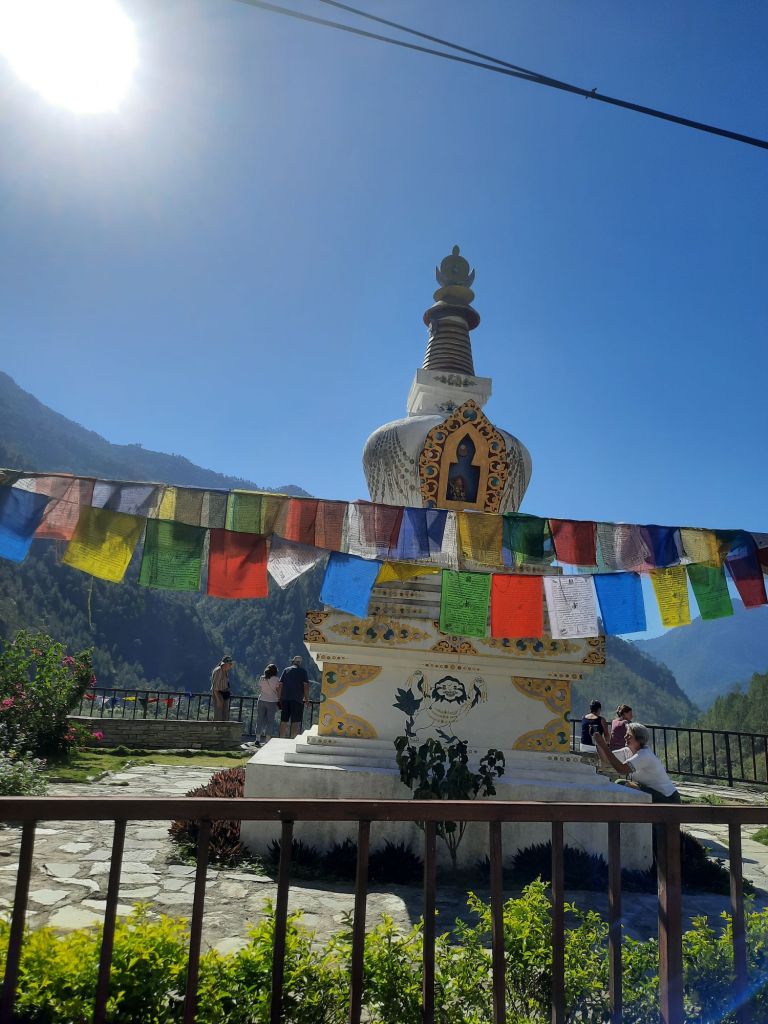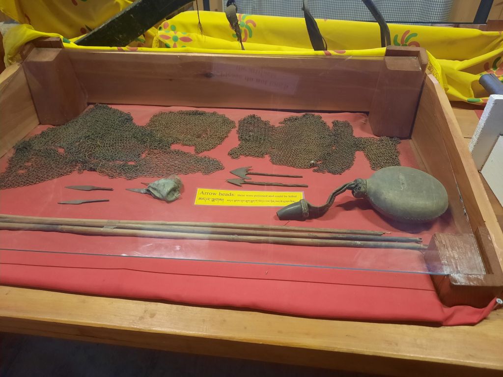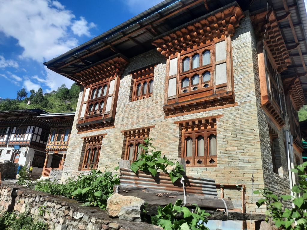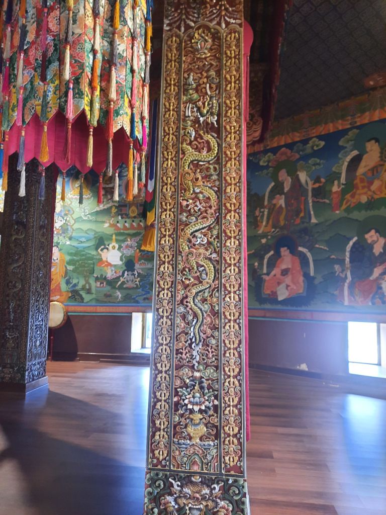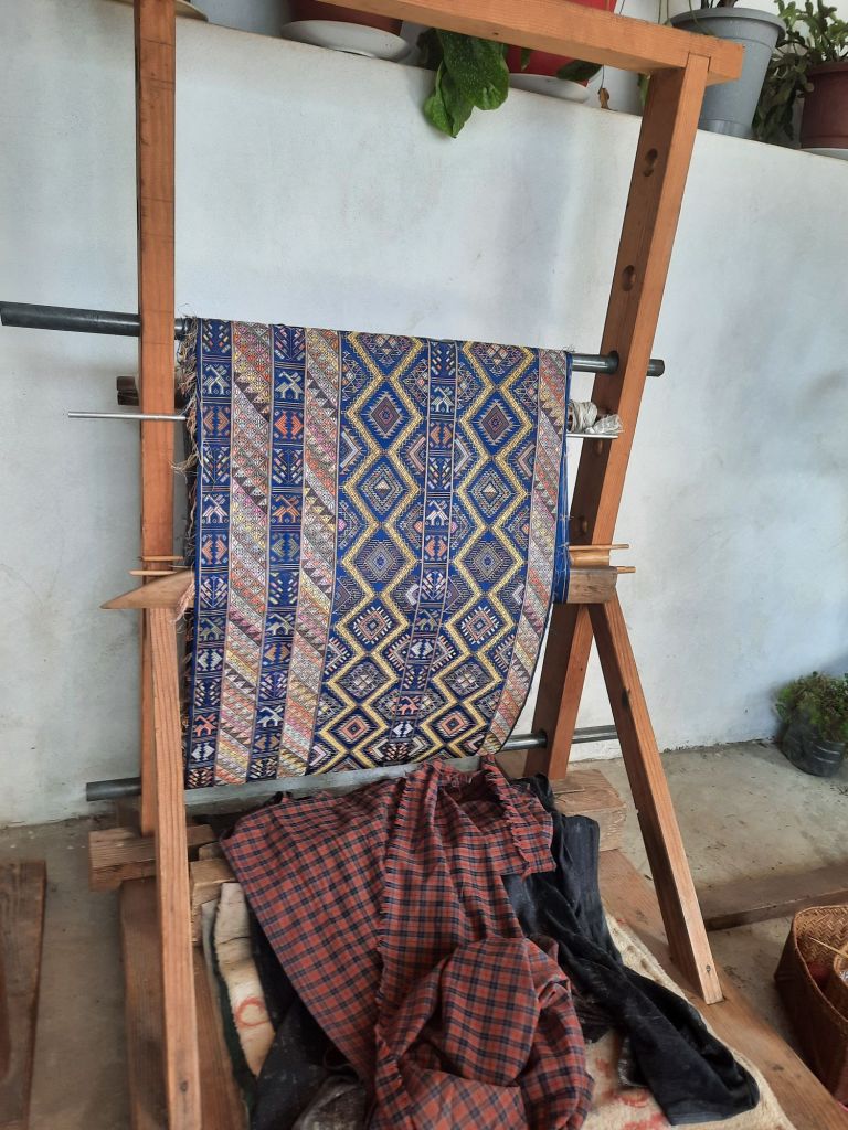 Dan verder over slingerweg omhoog. Hoog op de beg staat het huis van een grote Tibetaanse meester die in de 14de eeuw naar Buthan kwam. Longchen Rabjám bouwde hier een groot complex. De familie woonde hier eeuwen lang. De kinderen van de laatste generatie besloot te gaan studeren. Na de studie keerde ze terug en besloten het huis op te knappen en er een museum van te maken. Zeer mooi opgezet . 3 verdiepingen vh huis is te bezichtigen met een houten steile trap. Achter de gebedsrollen staan hier zeer oude klei tabletten met verschillende Boeddha’s.