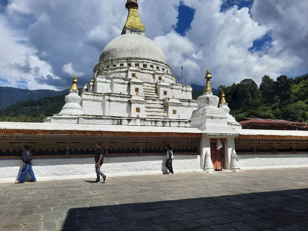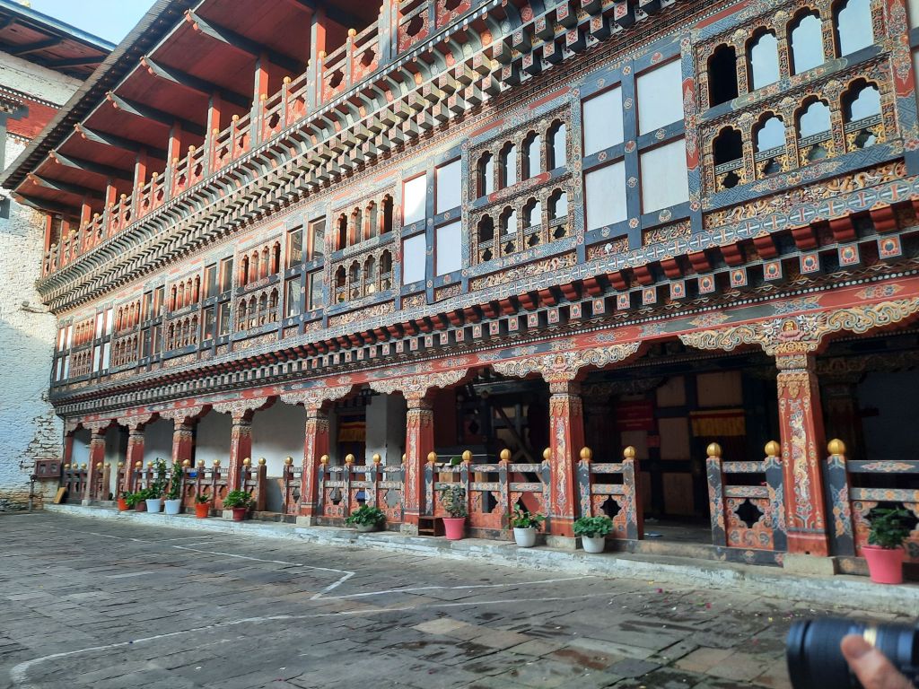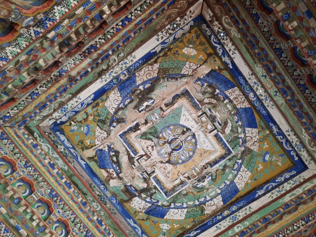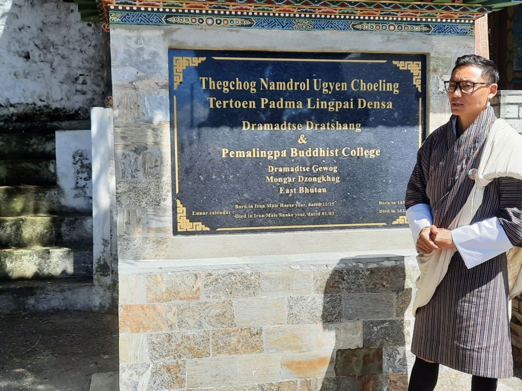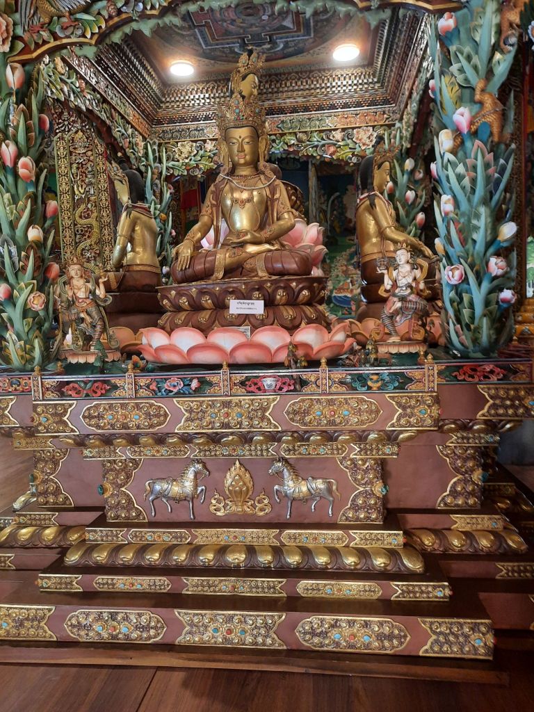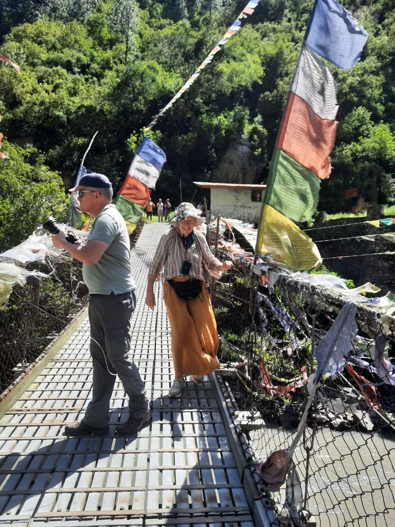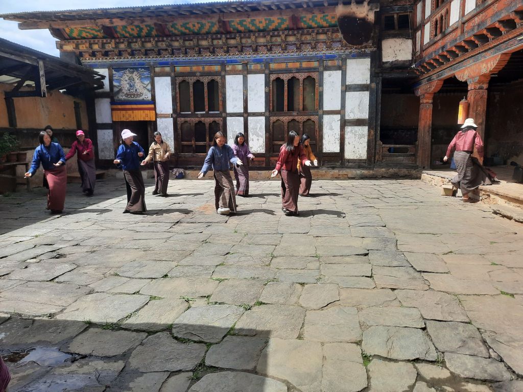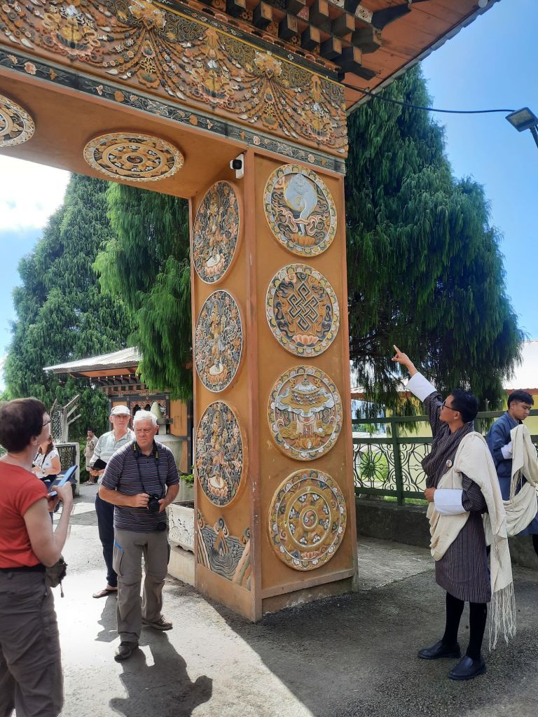Dan verder over slingerweg omhoog. Hoog op de beg staat het huis van een grote Tibetaanse meester die in de 14de eeuw naar Buthan kwam. Longchen Rabjám bouwde hier een groot complex. De familie woonde hier eeuwen lang. De kinderen van de laatste generatie besloot te gaan studeren. Na de studie keerde ze terug en besloten het huis op te knappen en er een museum van te maken. Zeer mooi opgezet . 3 verdiepingen vh huis is te bezichtigen met een houten steile trap. Achter de gebedsrollen staan hier zeer oude klei tabletten met verschillende Boeddha’s.